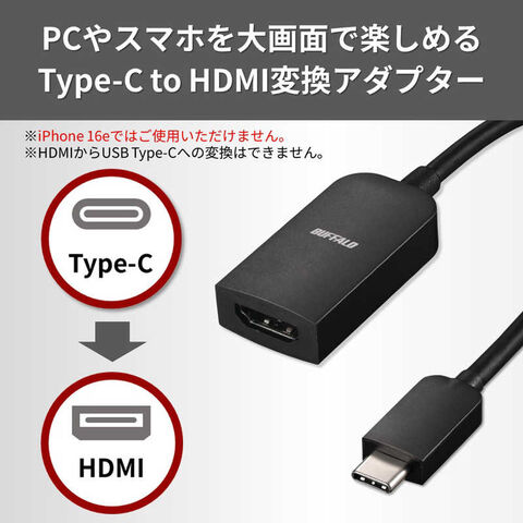 BUFFALO Type-C to HDMI変換アダプタ [0.15m /HDMI⇔Type-C] BSCHDBK