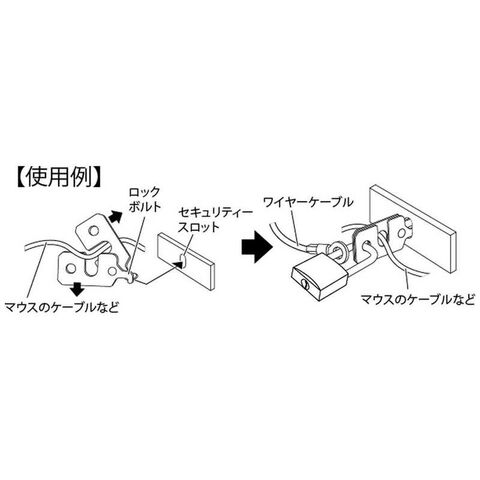 ●セキュリティースロットにセット、ワイヤーとカギを取り付ける盗難防止用パーツ