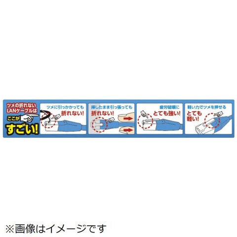 絶対にツメが折れない!強いLANケーブル。コネクタ部分に新素材を使用し、強度が飛躍的にUP持ちやすいコネクタデザイン。持ちやすいように傾斜をつけたオリジナルデザインのコネクタ。