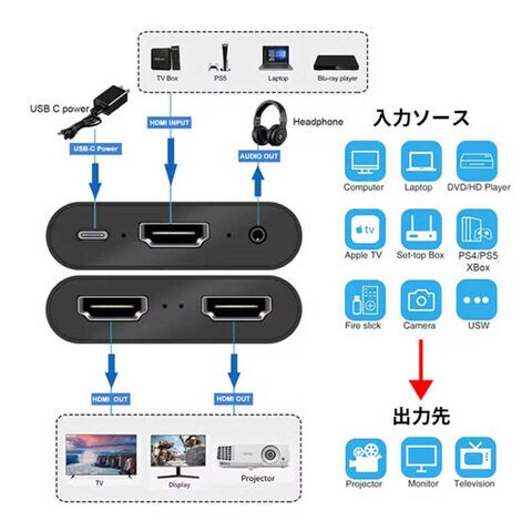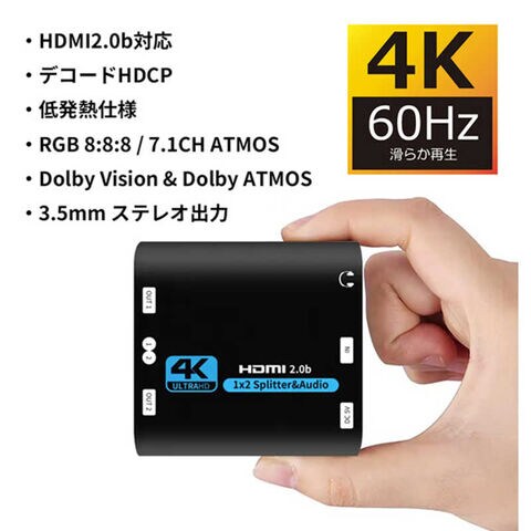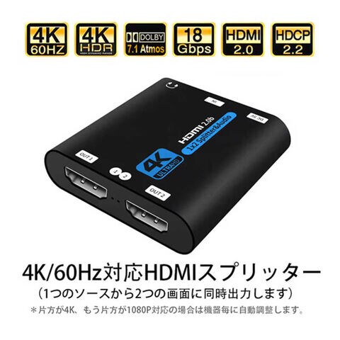 YOUZIPPER 4K/60Hz対応 / 1:2 HDMIスプリッター / 3.5mmステレオ出力付/HDCP2.2/RGB8:8:8 HDX-SP4K3