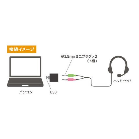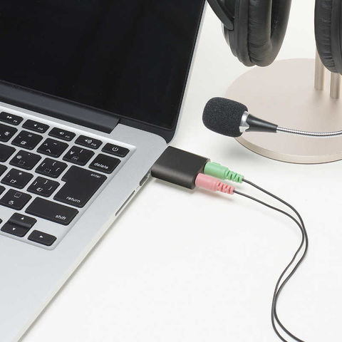 ●マイク端子がないパソコンや、マイク端子の増設に最適お気に入りのヘッドセットを、対応した端子のないパソコンで使用することができます。手持ちの3極タイプのヘッドセットやヘッドフォンを有効活用できます。