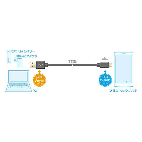 ●充電通信両対応これ1本でUSB充電器での充電や、パソコンとのデータ通信、充電に使えます。