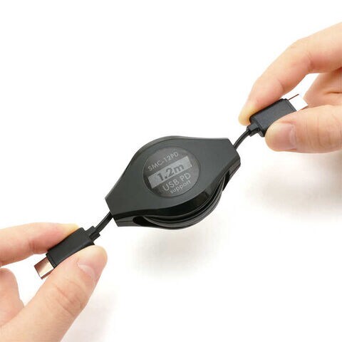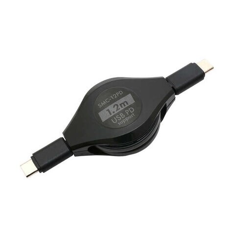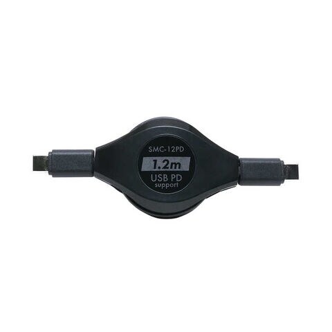 ナカバヤシ USB-C ⇔ USB-Cケーブル巻き取り式 ブラック 1.2m USB Power Delivery対応 [SMC12PD] SMC-12PD