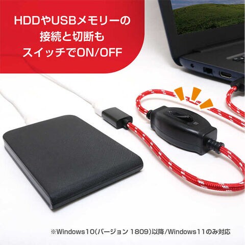 ●ストレージの切断に(Windows10/11のみ)HDDやUSBメモリーの接続と切断をスイッチで簡単にON/OFFすることが可能です。