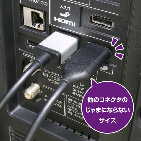 ●USB PD対応で給電しながら使用が可能USB PD対応で給電しながらスマートフォンやPCの画面をTVに映せます。本製品はUSB PD給電ユニットがコネクタから離れています。HDMI端子やTypeC端子は通常サイズとなり、他のコネクタのじゃまになりません。
