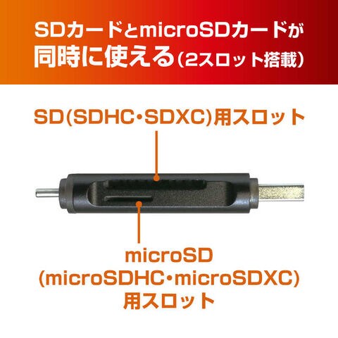 ●SDカード・microSDカード同時使用可能USB TypeC・USBA端子搭載のPC・タブレットでSDカード・microSDカードを使用できるカードリーダ・ライタです。SDカード用とmicroSDカード用のドライブレターが別々に表示され、2つのメディアを同時に使用可能です。