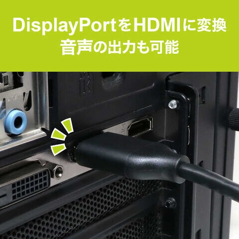 仕様1:[対応機種]・DisplayPortを搭載したPC・HDMIを搭載したモニター[コネクタ]DisplayPort-HDMI[最大対応解像度]4K(3840×2160)/60Hz ※4K/60Hzの映像を出力する場合は、Premium HDMIケーブルをお使いください。[対応規格]DisplayPort1.2/HDMI2.0[HDCP]1.4/2.2[ケーブル長]約0.15m(コネクタ含まず)[ケーブル径]約5.0mm[対応ケーブル長]2mまでを推奨
