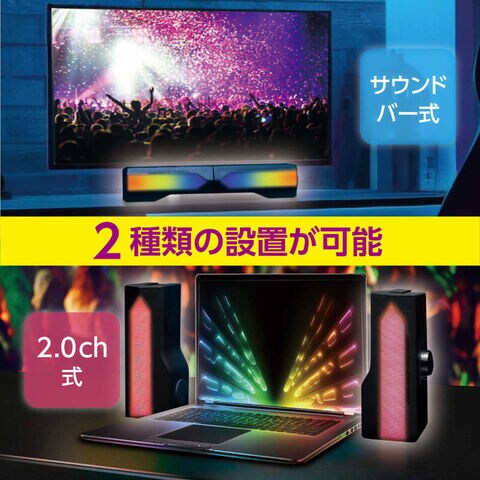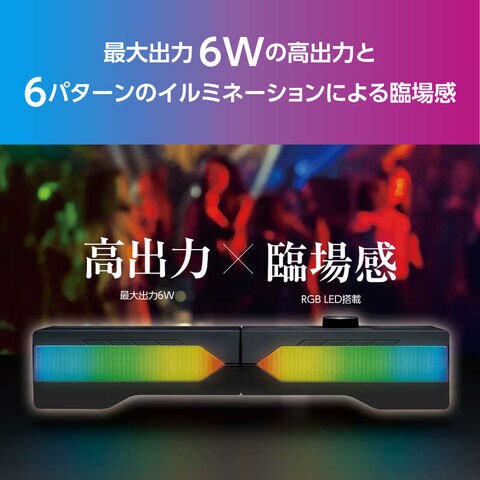 ナカバヤシ PCスピーカー USBスピーカー 6パターンイルミネーション サウンドバー式・2ch式 2WAYタイプ USB接続 [USB電源] USP-03/BK