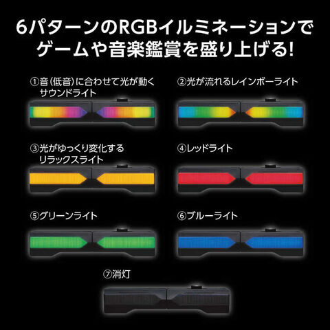 ●6パターンのイルミネーションRGB LED搭載で6パターンのイルミネーションを演出、ゲームや音楽鑑賞を盛り上げます。