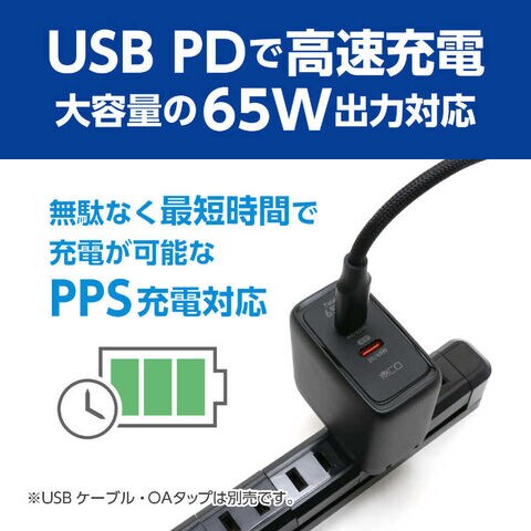 ●USB PD対応(65W) で高速充電可能な超コンパクトアダプタ20VまでのUSB PDに対応したコンパクトなACアダプタです。