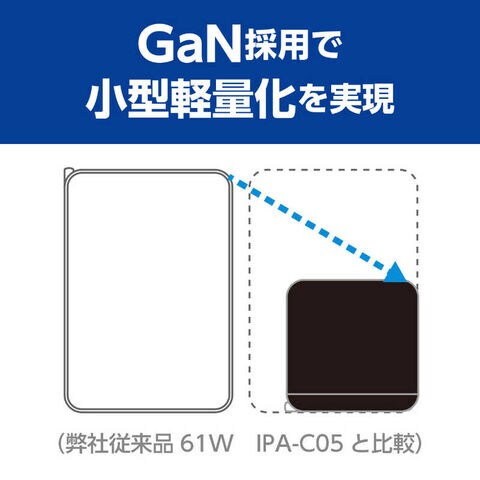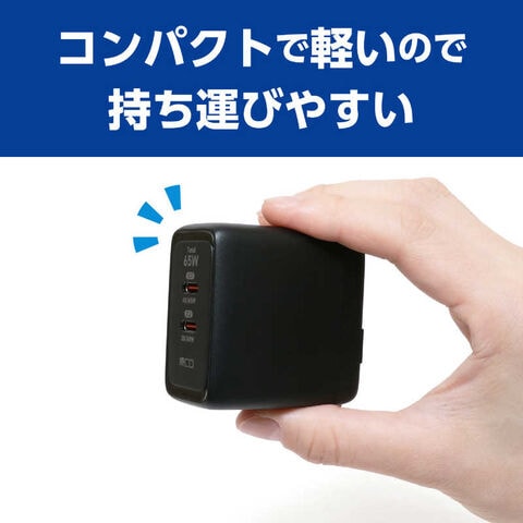 ●GaN採用で軽量コンパクト本製品はGaN(窒素ガリウム)を採用し65Wのハイパワーで小型軽量化を実現しています。