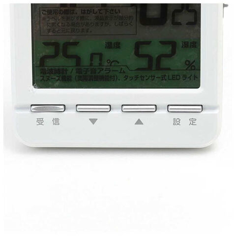 ※電波時計、電波受信状況表示、12/24時間表示切替、カラフル液晶、温度/湿度表示、カレンダー表示、電子音アラーム、スヌーズ機能、スヌーズ間隔調整機能、タッチセンサー式LEDライト