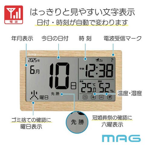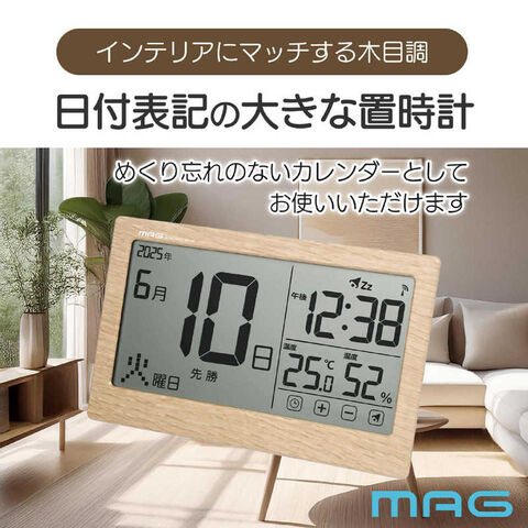 MAG 大きなカレンダー表示の電波時計 [デジタル / 電波自動受信機能有] ナチュラル T798NZ