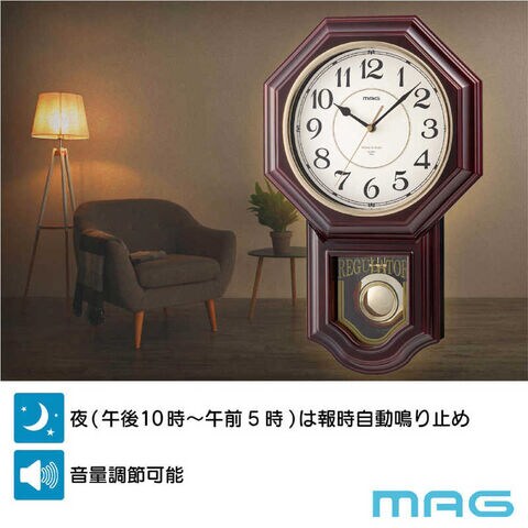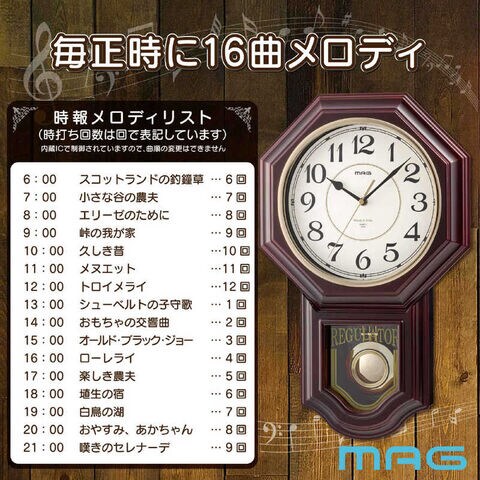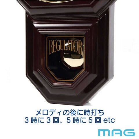 MAG クラシカルなメロディ&ボンボン振り子時計 ブラウン W828BRZ