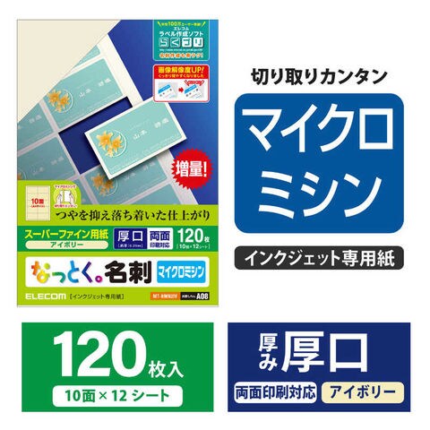エレコム ELECOM なっとく。名刺(両面マット調タイプ・厚口)「120枚/アイボリー」 [MTHMN2IV] MT-HMN2IV