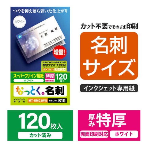 エレコム ELECOM なっとく。名刺(両面マット調タイプ・特厚口)「120枚/ホワイト」 [MTHMC3WN] MT-HMC3WN