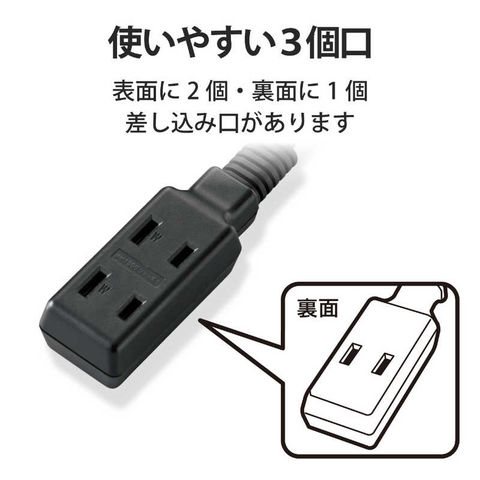 エレコム ELECOM モバイル電源タップ(2ピン式・3個口・1.0m・ブラック) [TM310BK] T-M310BK
