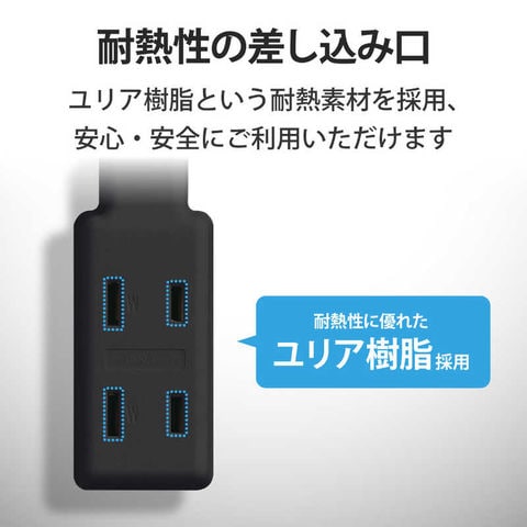 ●タップ全体に耐熱性に優れたユリア樹脂を使用していますので、万一の発熱の際にも融解しにくく、電気火災の防止に有効です。