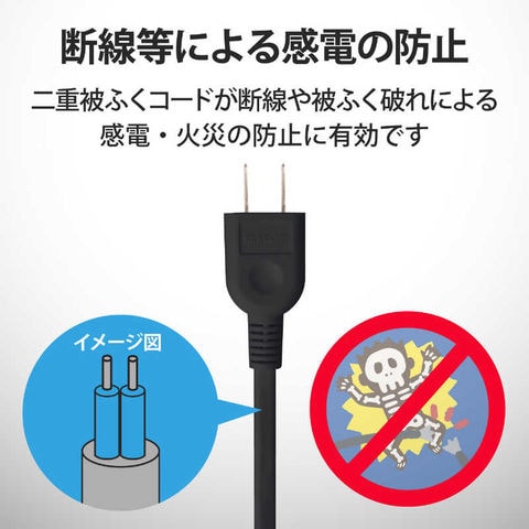 ●電源コードには、社団法人日本配線器具工業会規格(JWDS0010)に適合した二重被ふくコードを採用していますので、断線や被ふく破れによる感電・火災の防止に有効です。