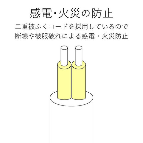 ●電源コードは一般社団法人日本配線システム工業規格に適合した二重被ふくコードを採用しており、断線や被ふく破れによる感電・火災の防止に有効です。