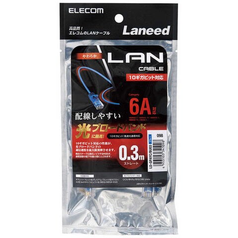 エレコム ELECOM CAT6A LANケーブル やわらか(0.3m・ブルー) [LDGPAYCBU03] LD-GPAYC/BU03