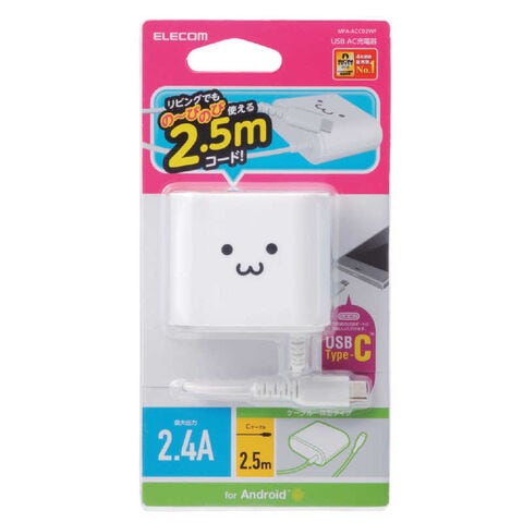 エレコム ELECOM タブレット/スマートフォン対応 [USB-C] AC充電器 Type-Cケーブル一体型 2.4A出力 2.5m MPAACC02WF