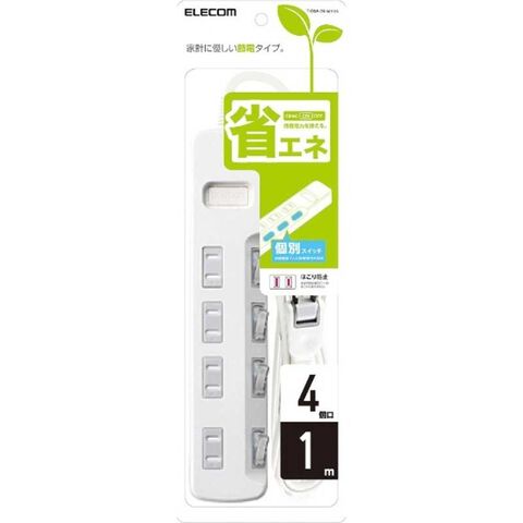 エレコム ELECOM 省エネタップ [1.0m /4個口 /スイッチ付き(個別)] ホワイト TE6A2410WH