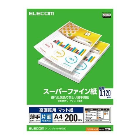エレコム ELECOM 高画質用スーパーファイン紙(A4・薄手・片面200枚) [EJKSUPA4200] EJK-SUPA4200