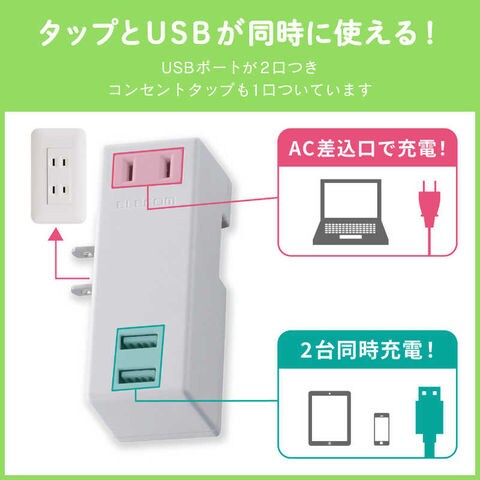 エレコム ELECOM USB充電ポート付モバイルタップ (2ピン式・1個口・USB2ポート) [MOTU042122WH] MOT-U04-2122WH ホワイト