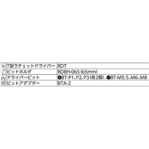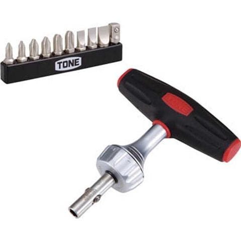 ●T型ラチェットドライバーのハンドルに差替式ビットホルダと、使用頻度の高いビットを付属したセットです。
