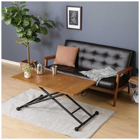 不二貿易 昇降テーブル シルビア アンティークブラウン 19241