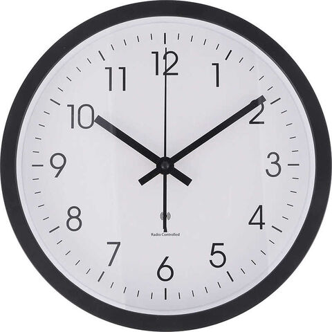 不二貿易 電波掛時計 シンプル 25cm [電波自動受信機能有] ブラック 70475