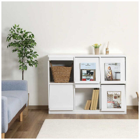 ●分割された収納スペースと魅せるフラップ扉で、お気に入りの雑誌などを飾ってオリジナルのインテリアとして楽しめます。