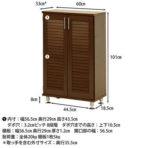 ●扉部分は通気性の良いルーバー仕様で湿気がこもりにくくなっております。