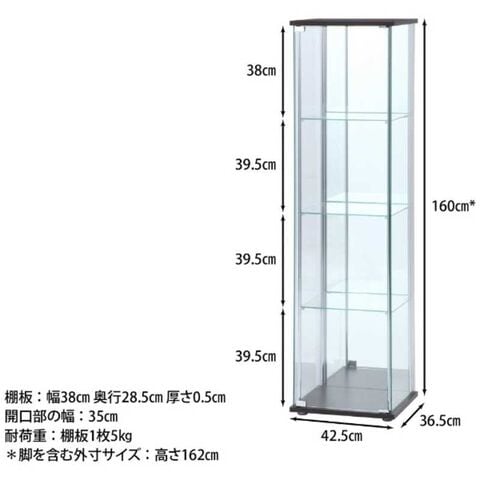 不二貿易 ガラスコレクションケース 4段(背面ミラー付き) ブラウン(高さ160cm) 96046 (お届けのみ)