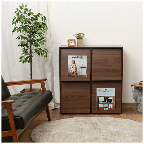 ●分割された収納スペースと魅せるフラップ扉で、お気に入りの雑誌などを飾ってオリジナルのインテリアとして楽しめます。