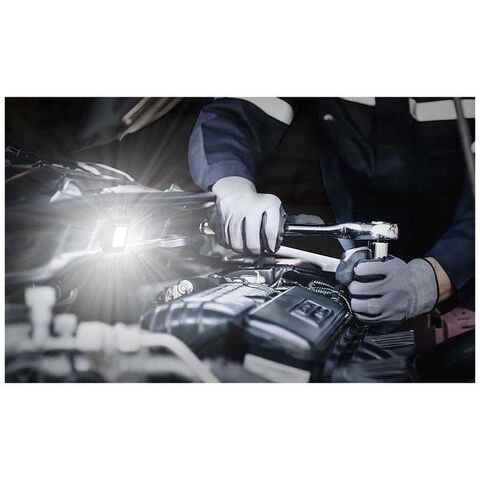 手のひらサイズの本体から投光器のような強力な光を放ちます。