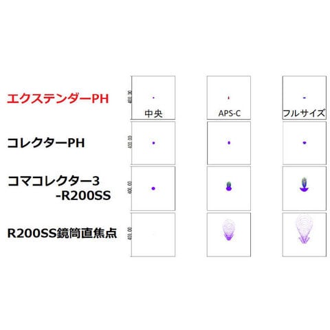 ●「R200SS鏡筒」の焦点距離を1.4倍(800→1,120mm)に延長しつつ、明るいニュートン式光学系で発生するコマ収差も良好に補正しています。