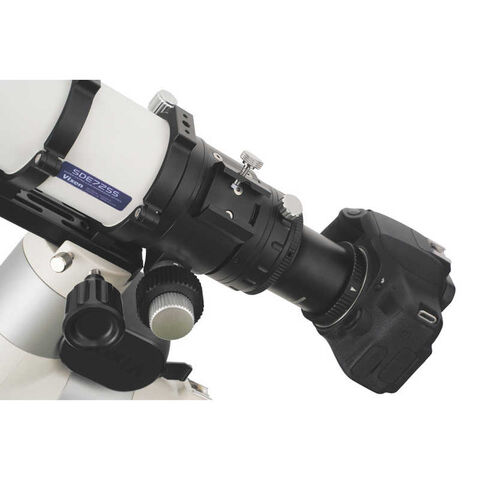●SDE72SS用レデューサーSDE72SS鏡筒が焦点距離346mm(F4.8)の撮影鏡筒に早変わり。焦点距離を0.8倍に短縮するとともに像面が平坦化され、写真性能が向上します。イメージサークルφ30mm、APS-Cサイズ以下のセンサーをカバーします。