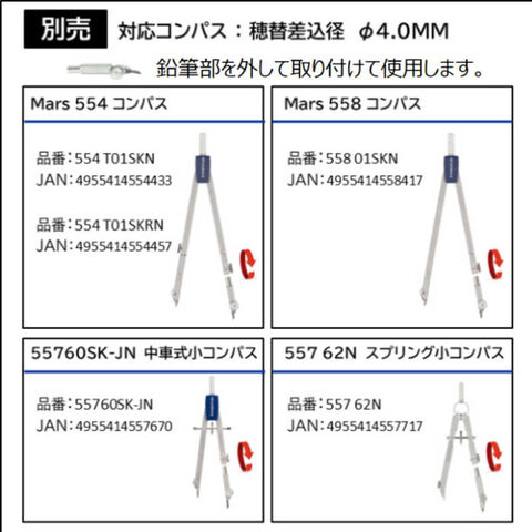 ステッドラー 小コンパス用シャープ部 0.5mm芯 穂替差込径4mm 956 45