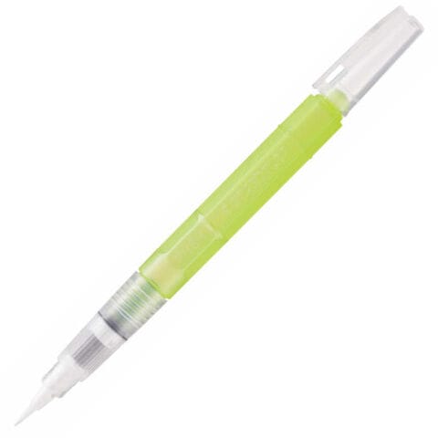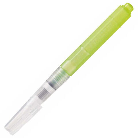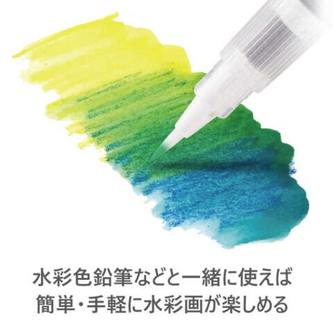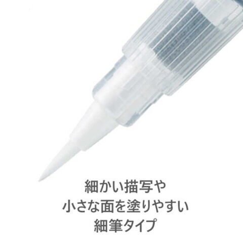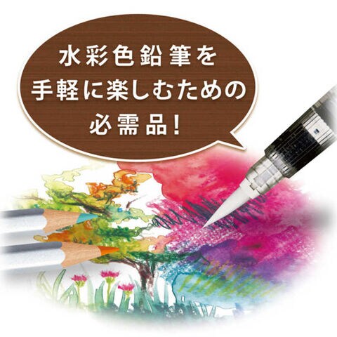 水を入れた後、軸部分を押すと筆先がぬれ、いつでも気軽に水彩表現が楽しめる大変便利な筆です。