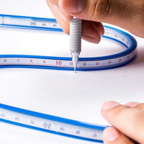 芯材に軟質アルミ芯を採用した軽量タイプの目盛付き自在曲線定規(40cm)。