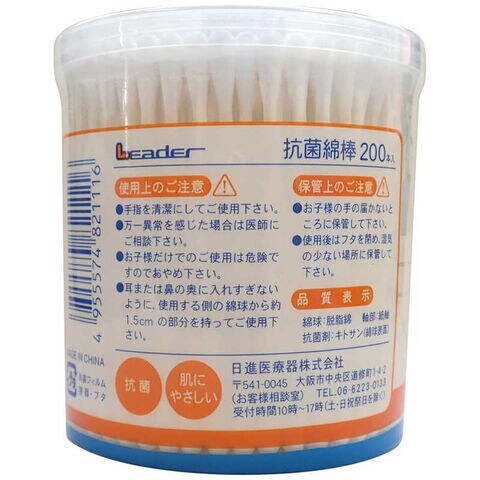 日進医療器 リーダー 抗菌綿棒 200本入 2個パック Rコウキンメンボウ200PX2P