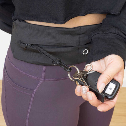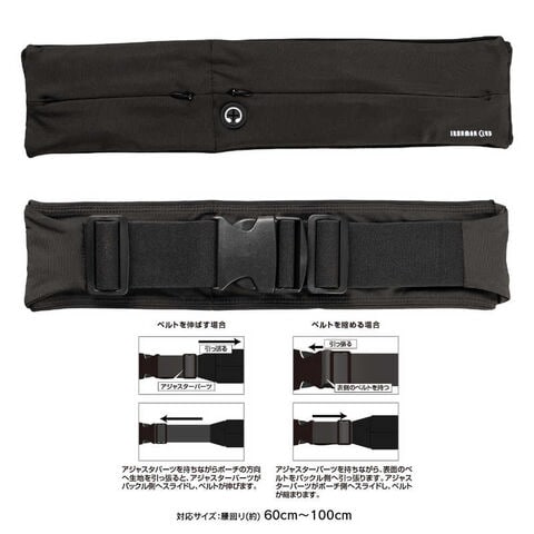 体にしっかりフィットするジョギング、ランニング用ポーチ。長さ調節可能で腰回り600~1000mmまで対応。ベルトは装着簡単なバックル式。