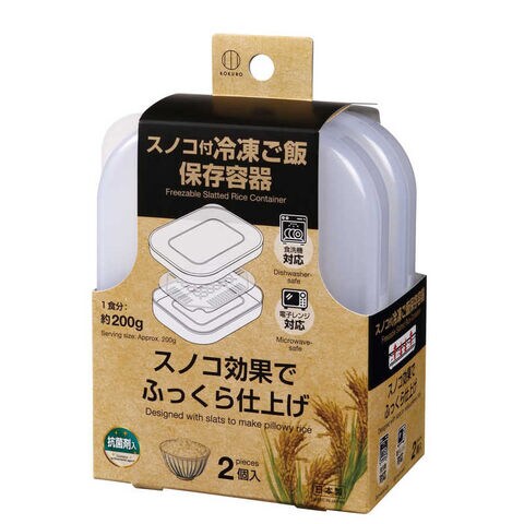 本品はポリプロピレン製の容器、スノコ、フタのセットで、ご飯を機能的に冷凍保存し、おいしく加熱するのに適しています。
