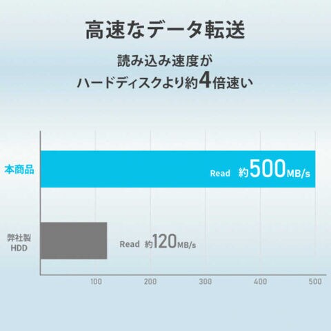 読み込み速度は約500MB/sと、当社製ハードディスクの約4倍高速!
