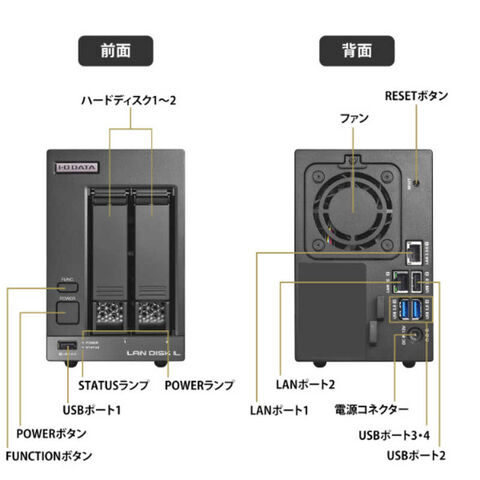 仕様1:[HDD] 採用ドライブ:NAS専用ハードディスク ドライブ数:2(SATA接続) HDD取替え機構:カートリッジタイプ ホットスワップ対応:○[CPU]ARM Cortex-A55 Quad core 1.8GHz[メモリー]2GB[同時接続台数(目安)]50台[作成可能な共有フォルダー数]400[作成可能なユーザー数]300[作成可能なグループ数]100[対応通信プロトコル]TCP/IP(IPv4、IPv6)
