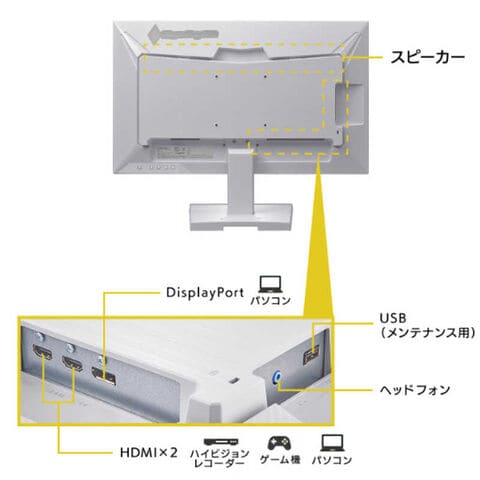 仕様2:[搭載技術] HDR(HDR10入力対応) 可変リフレッシュレート ・DisplayPort:NVIDIA G-SYNC Compatible、Adaptive-Sync ・HDMI:HDMI VRR フリッカーレス ブルーリダクション[各種規格・法規制]VCCI Class B、RoHS指令準拠(10物質)、J-Mossグリーンマーク、電気用品安全法(本体)、PCリサイクルマーク
