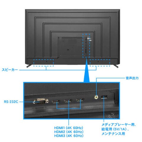入出力端子:USB-A×1(メディアプレーヤー用、給電用:5V/1A、メンテナンス用)ステレオミニジャック φ3.5mm