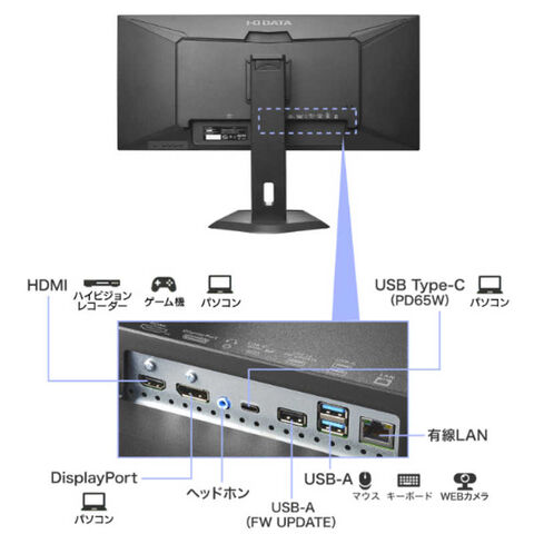 UWQHD解像度に対応した高精細な液晶ディスプレイです。